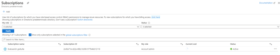 Elegimos nuestra suscripción, yo estoy con al de prueba así que elegiré esa