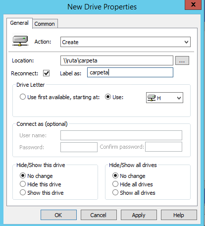 Añadimos todas las unidades que queramos a la GPO con estos últimos pasos, y con esto ya tendríamos la GPO para mapear nuestras unidades de red.
