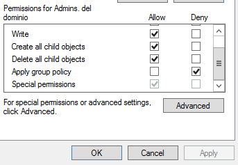 Hasta aquí sencillo, ahora lo voy a complicar un poco mas haciendo que a los administradores de dominio no se les aplique esta GPO ya que puede ser peligroso por temas de virus y demás.