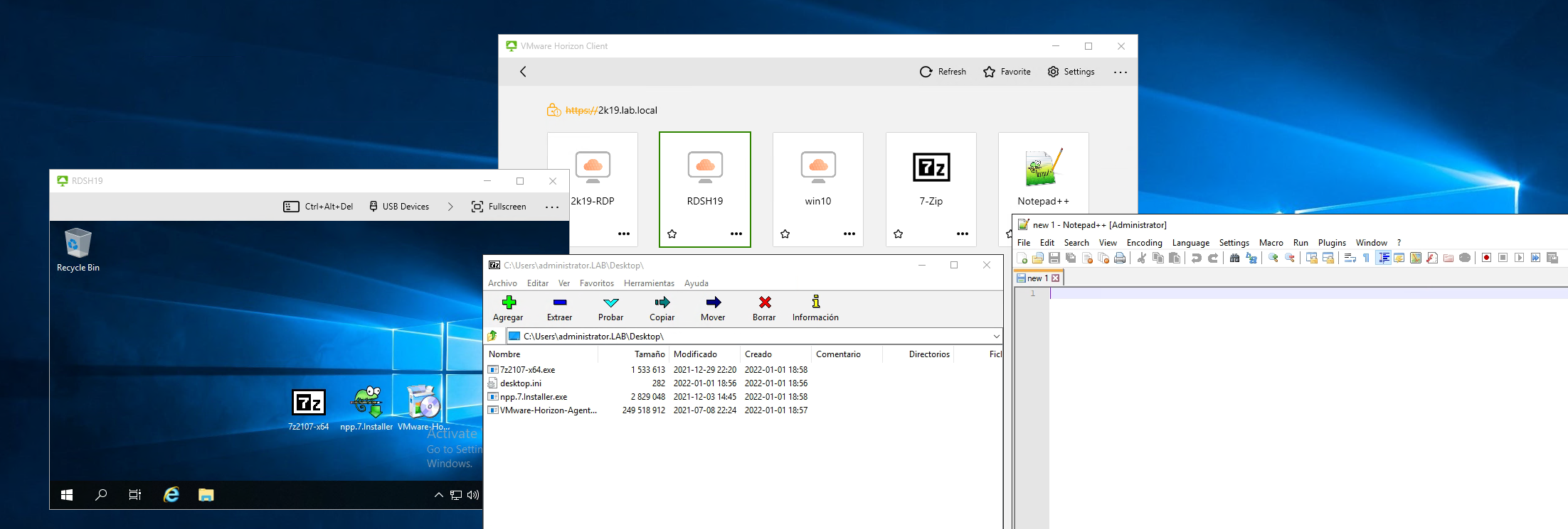 En este enlace trabajamos con los RDSH de escritorio, y vimos como publicar escritorios remotos de Windows server sobre horizon 8 y accedimos vía web a un servidor Windows server 2019.